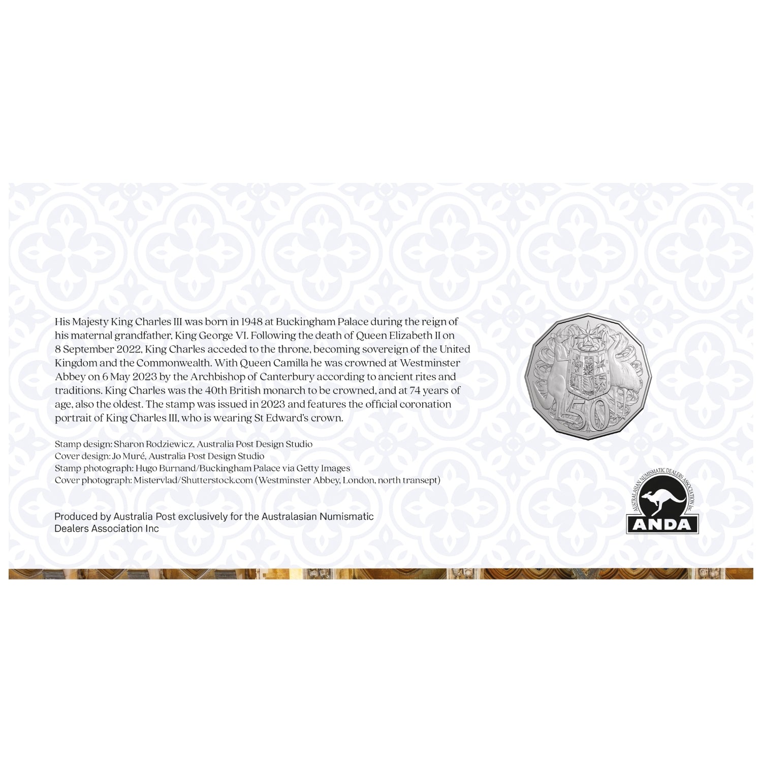 Notable for the tiny limited edition of just 750, this official Australia Post release is headlined by a King Charles III 2025 50c. Struck by the Royal Australian Mint, and bearing the classic Coat of Arms motif on the reverse, each coin carries the official portrait of the king by the Royal Mint’s Daniel Thorne. Individually numbered, and featuring a special ANDA overprint, the cover features two official King Charles III Coronation stamps.