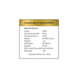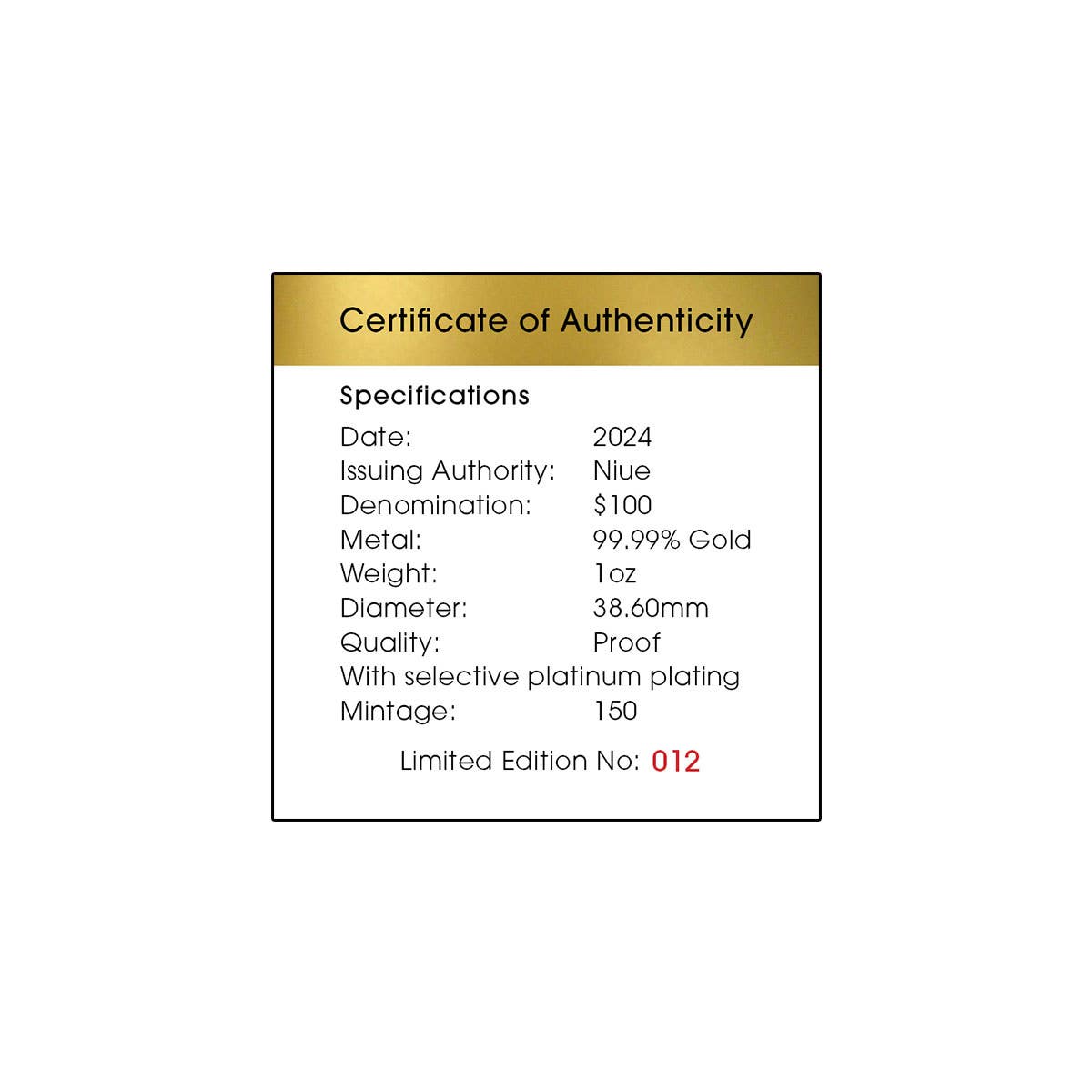 Struck to Proof quality from 1oz pure 99.99% GOLD.