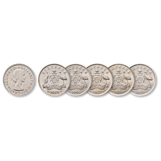 Australia Elizabeth II 1955-59 Bronze Sixpence about Uncirculated-Uncirculated 5-Coin Set