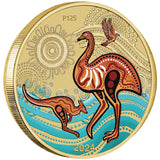 Notable for the eye-catching official Cover, and equally engaging official Australian $1.50c stamp from Australia Post, this impressive release is headlined by an Uncirculated $1 coin from the Perth Mint. Official Australian legal tender, the 30.70mm flan of the coin is dominated by a truly brilliant design by acclaimed Kalkadoon artist Chern’ee Sutton. The design features Chern’ee’s impression of an emu, kangaroo and bird, with the flowing lines representing footprints travelling across the land, and the circular motifs indicative of community gatherings.