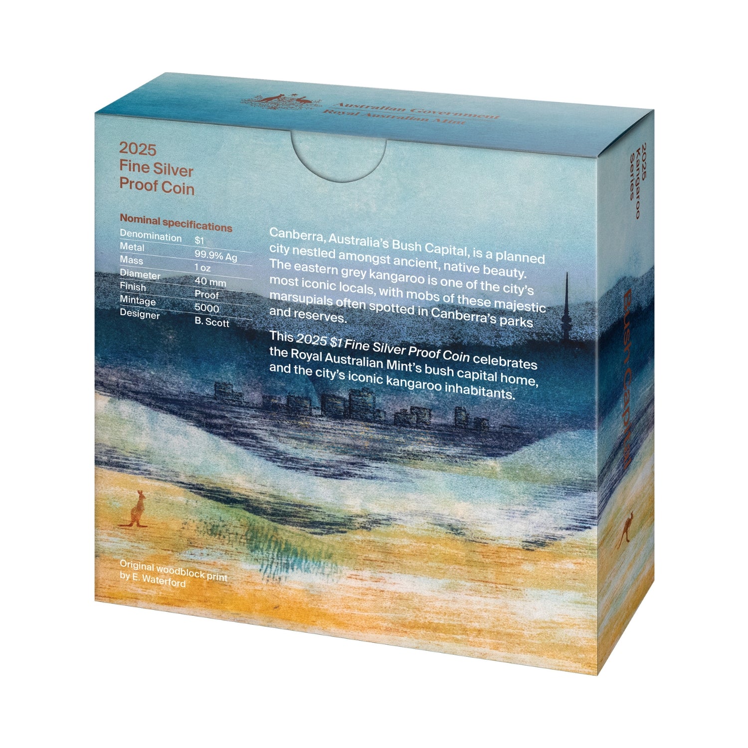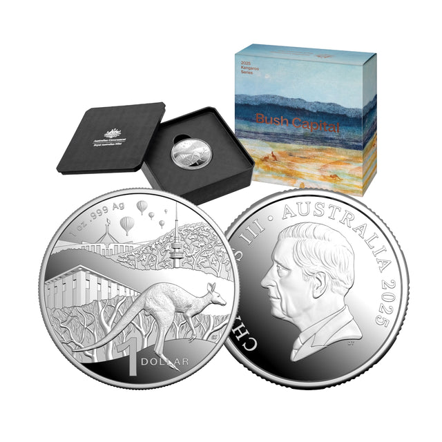A unique, impressive tribute to Australia’s primary native icon – and the nation’s ‘Bush Capital’, Canberra – the Royal Australian Mint’s 2025 $1 Kangaroo 1oz Silver Proof is an exquisite work of numismatic craftsmanship.