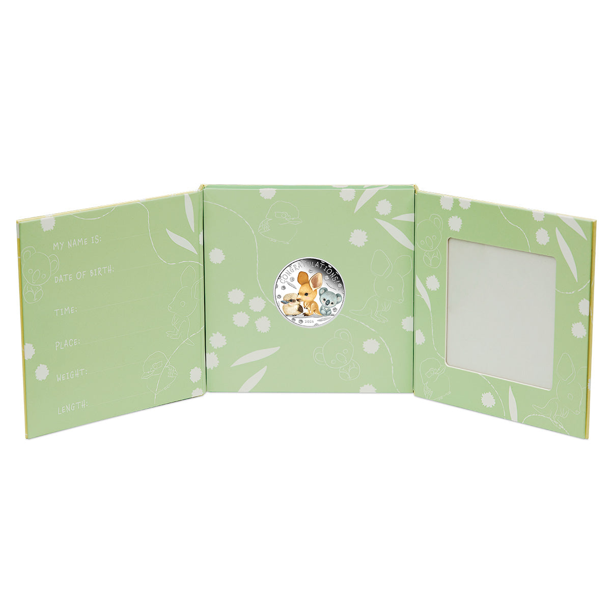 The perfect setting for the perfect present, each coin is housed within an illustrated gift card pack complete with space for the baby’s details, as well as a photo! Click add to cart now!