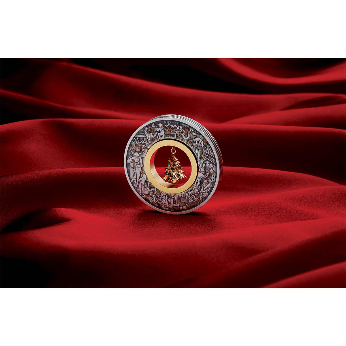 ·A stunning work of modern minting, and a Christmas gift that is sure to delight, we are proud to present the Santa’s Workshop Christmas Tree 2025 $2 2oz Silver Antique Coin!