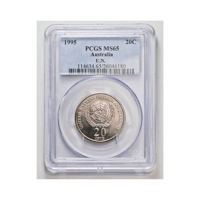 Australia United Nations 50th Anniversary 1995 20c Cupro-Nickel Coin PCGS MS65 (Gem Uncirculated)
