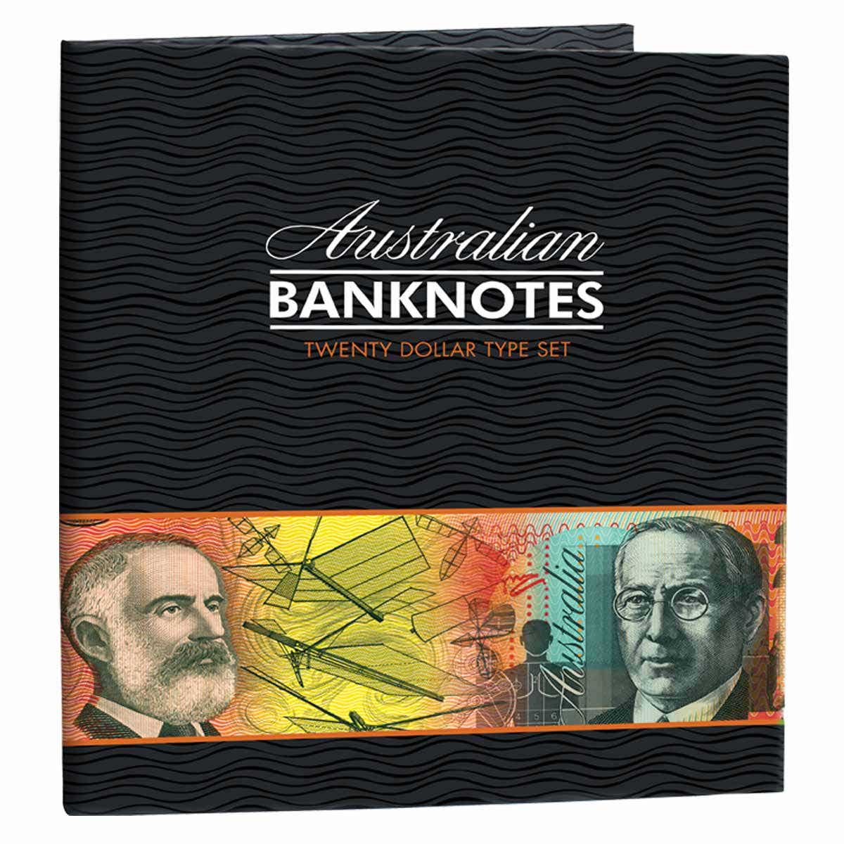 Features all four $20 Australian banknote types – two paper & two polymer.