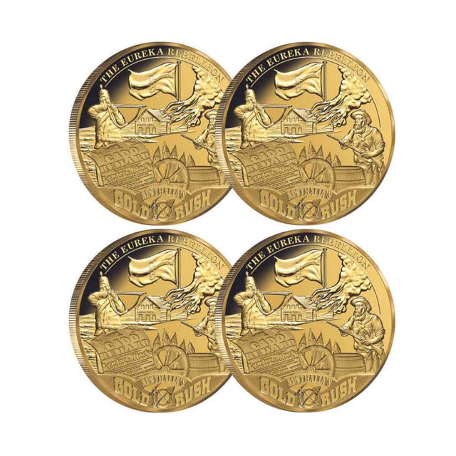 Includes four Gold-plated Proof Coins (designs of our choice) each commemorating the Australian Gold Rush