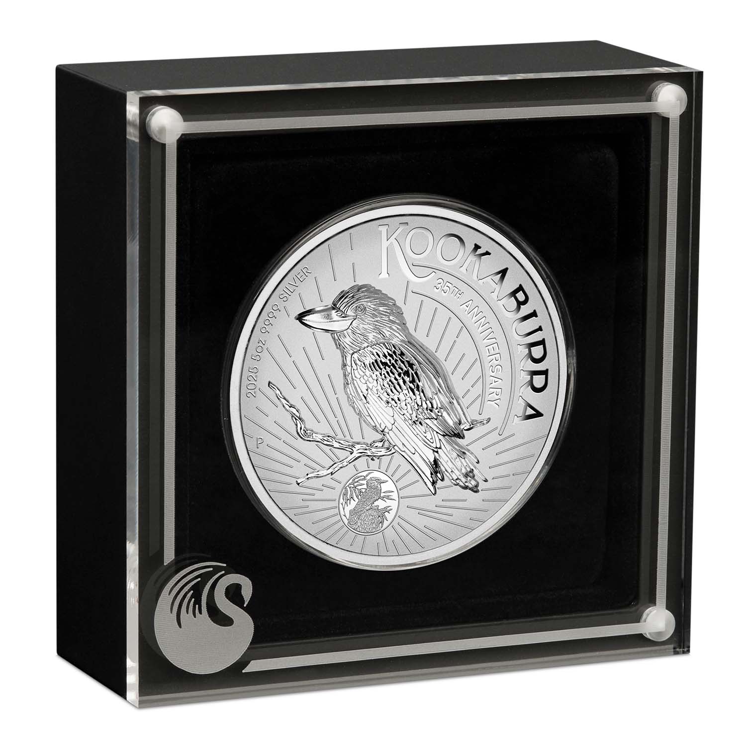 An official Australian legal tender tribute to the iconic kookaburra, this majestic Incuse 5oz 99.99% pure silver coin also forms a stunning tribute to the 35th anniversary of the Perth Mint’s 1990-2025 Silver Kookaburra Coin Series!