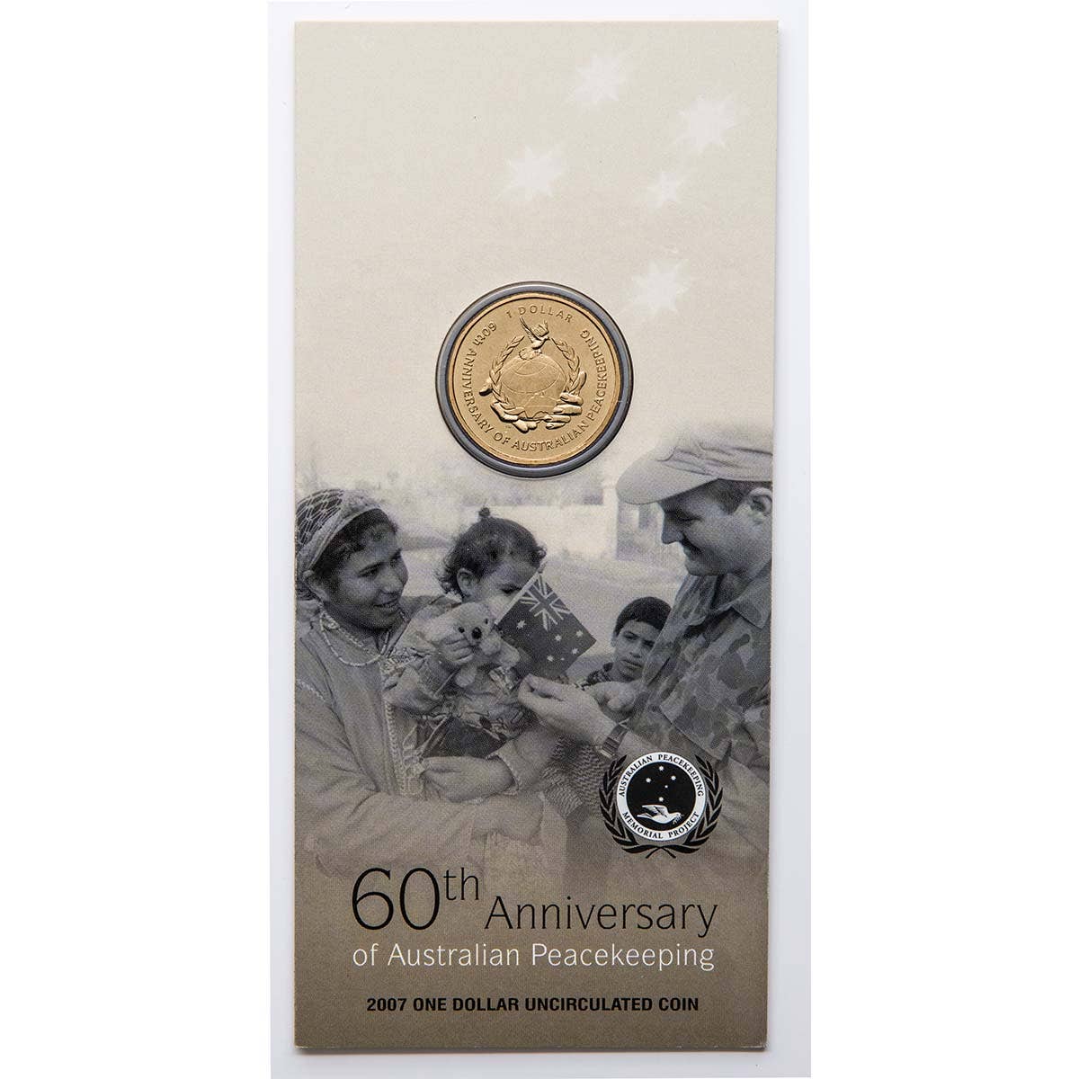Commemorating six decades of Australian peacekeeping service, the 2007 $1 Uncirculated Coin pays tribute to the brave men and women who have represented Australia in global peace operations since 1947. Struck by the Royal Australian Mint, this coin honours the invaluable contribution of Australian Defence Force personnel, police, and civilians who have served in conflict zones and regions of unrest to uphold international peace and stability.