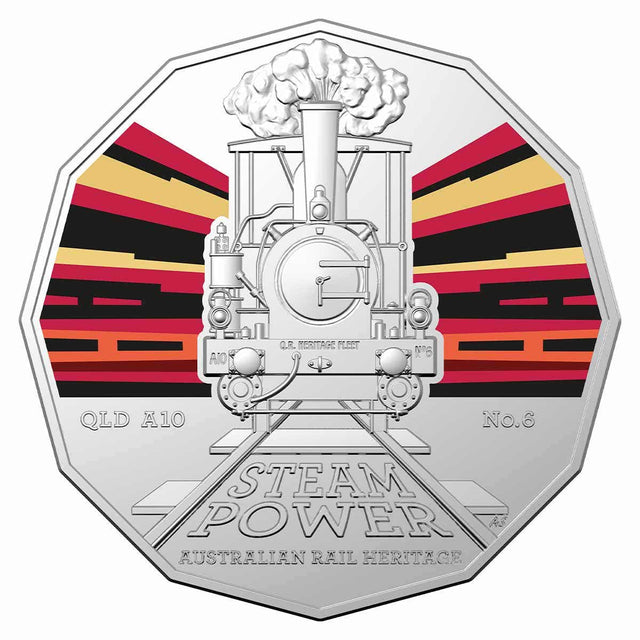 Australia Train Heritage 2022 50c Steam Power Colour Cupro-Nickel Uncirculated Coin