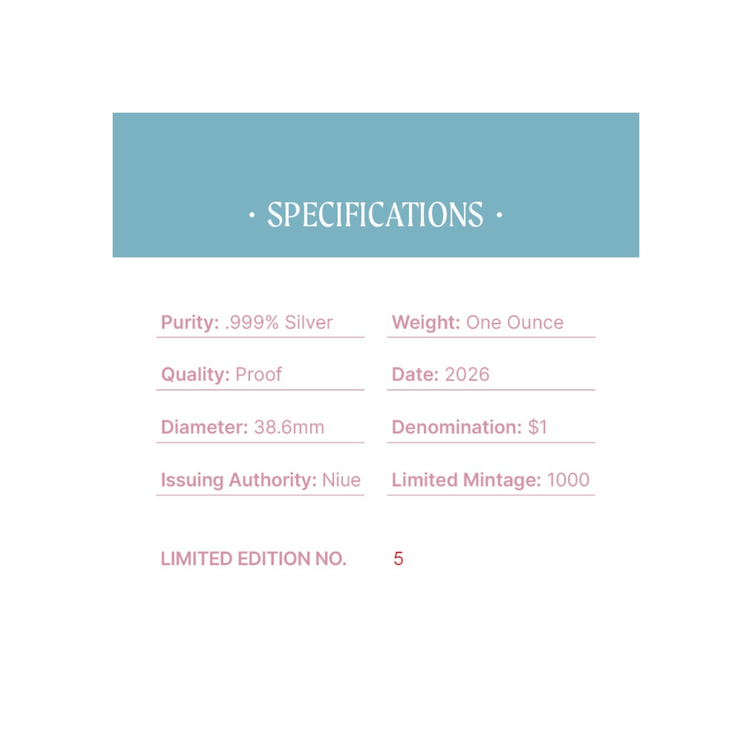 Struck to faultless Proof quality from 1oz of 99.9% silver.