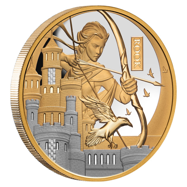 Prestigious, eye-catching and exclusive, this 99.99% pure gold Proof captures both the Ancient origins of the Rook, as well as the Western interpretation of the piece as a castle tower – a structure vital to both defence and attack. A masterwork of numismatic artistry, each coin portrays a castle featuring the chequered patterns of a chessboard, with an archer signifying the Rook’s ability to attack from distance. An inspired, richly symbolic complement, the birds represent lethal arrows in flight.