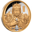 Exuding power and strength, the reverse design of this Niue legal tender masterpiece is an inspired celebration of the king chess piece. Spectacularly struck from 1oz of 99.99% PURE GOLD, the crowned king is presented holding a sword with the King Chess Piece at its hilt. Selectively plated in PLATINUM, the sword stands out magnificently against the mirror-bright