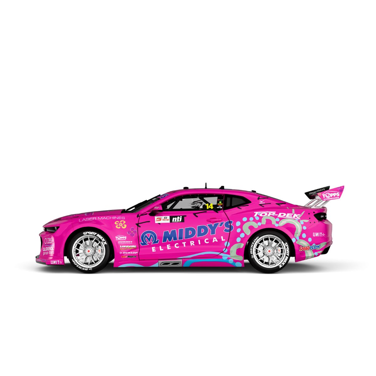 Intricately replicated livery showcasing lightening on Middy's pink and blue colours.