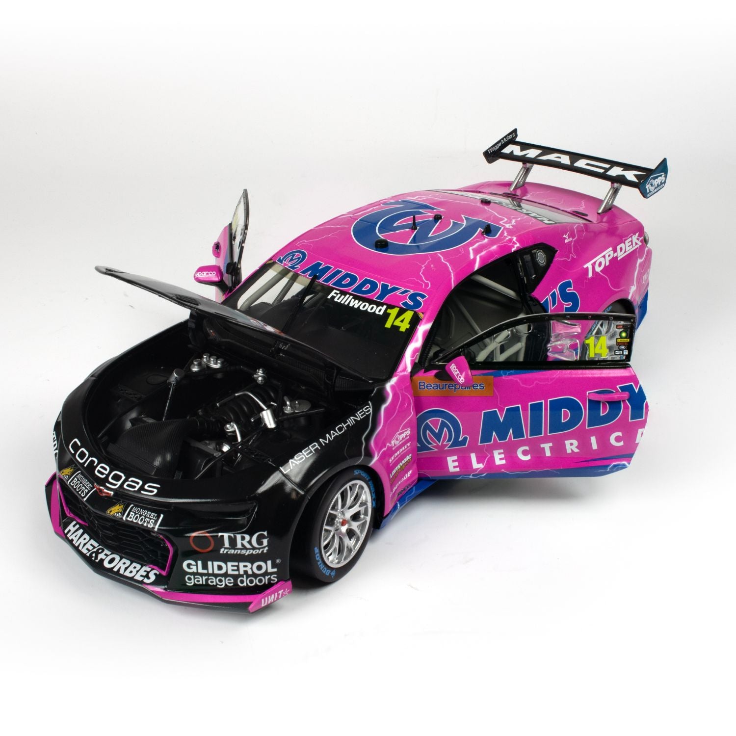 With opening parts and a spectacularly crafted diecast body, Fullwood, BJR and Chevrolet fans can now own an authentic reproduction of this spectacular car with its eye-catching thunderbolt and lightning livery on trademark Middy’s pink and blue and sharp exterior finishes!