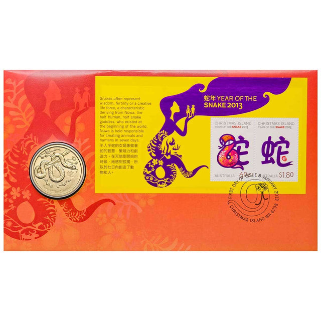 Chinese New Year 2013 $1 Year of the Snake Stamp & Coin Cover