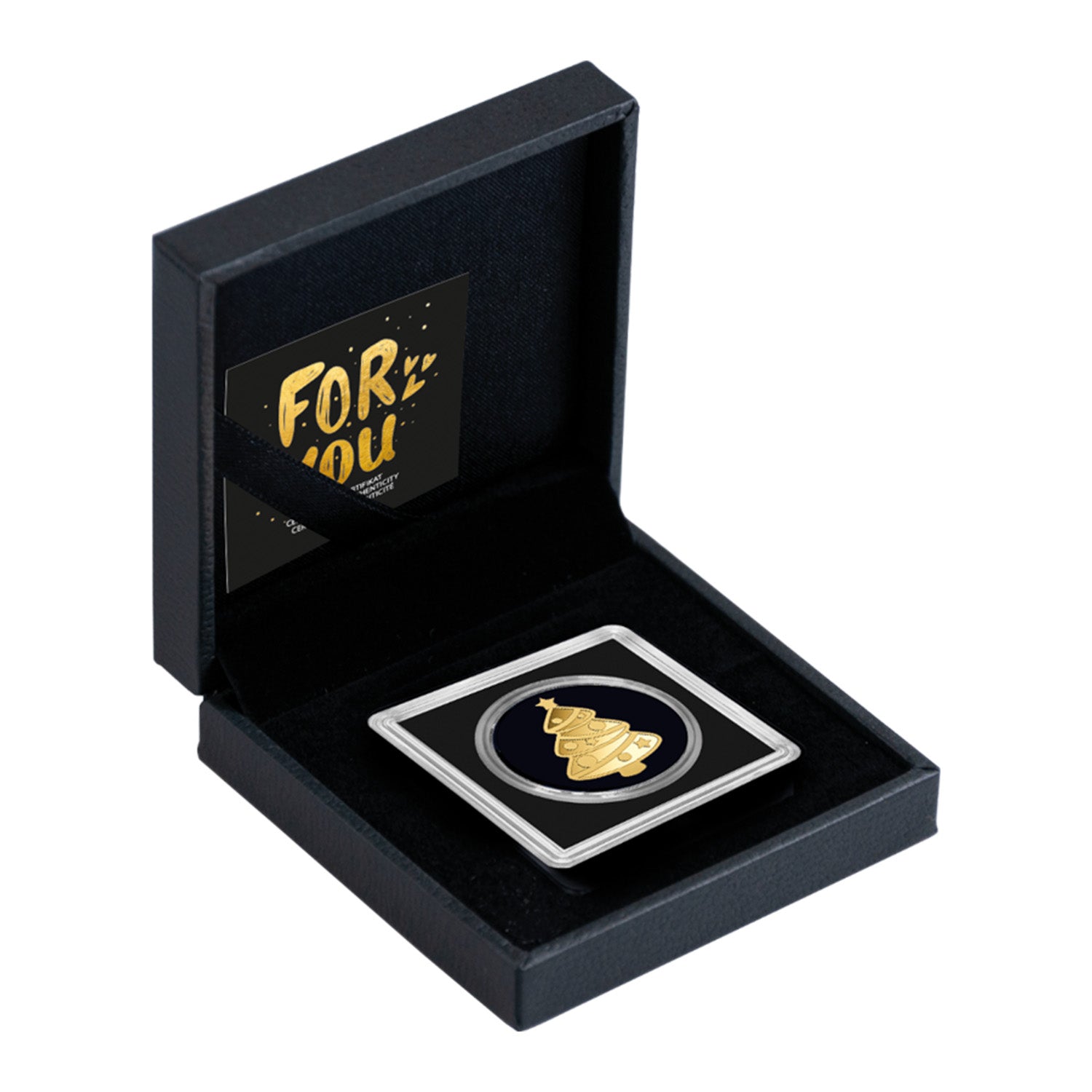 Celebrate the festive season with a charming Christmas tree-shaped coin!