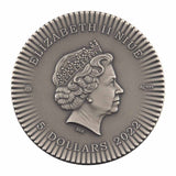 Struck from 2oz of 99.90% Silver to Antiqued High Relief quality.