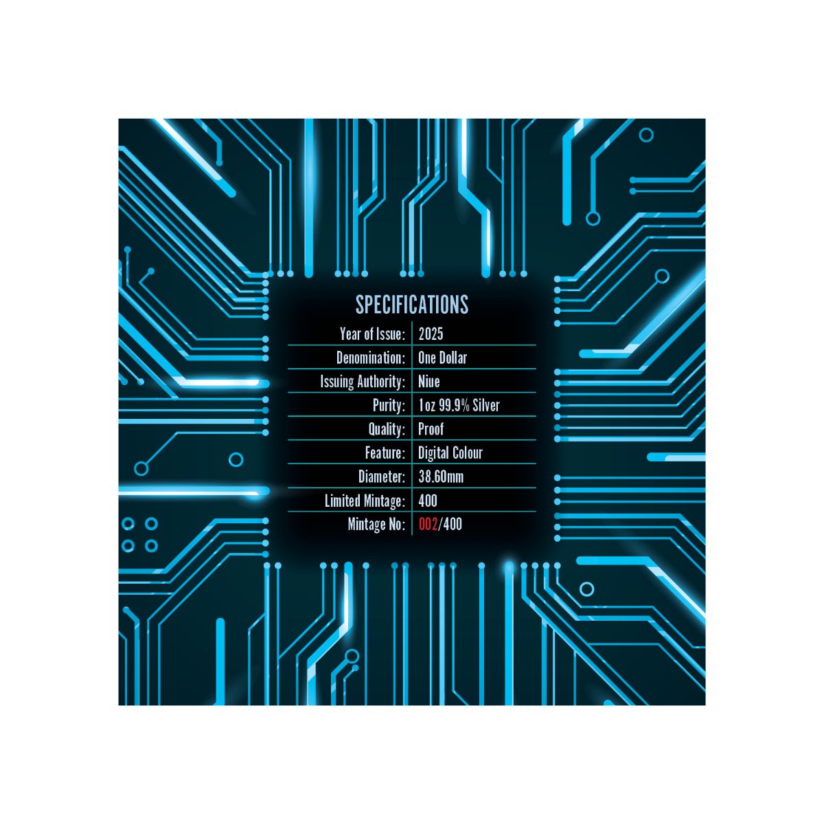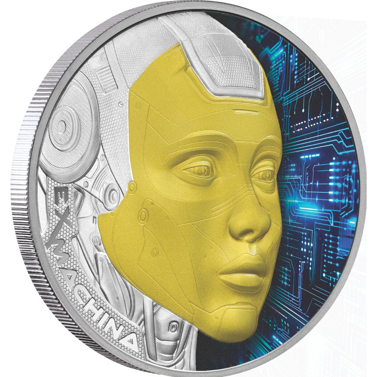 Using the latest in modern minting to explore the future, and the increasingly blurred lines between human and machine in the age of AI, we are delighted to present the Ex Machina 2025 $1 1oz Silver Proof Coin!