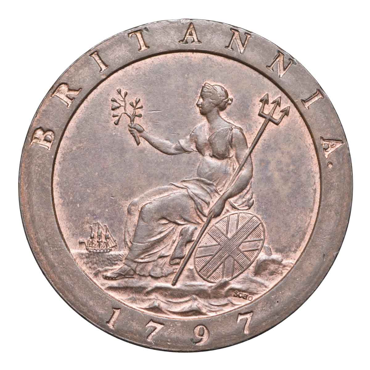 Very scarce in Extremely Fine, this is an outstanding example of the 1797 Cartwheel Penny: the trigger for the Proclamation of 1800.