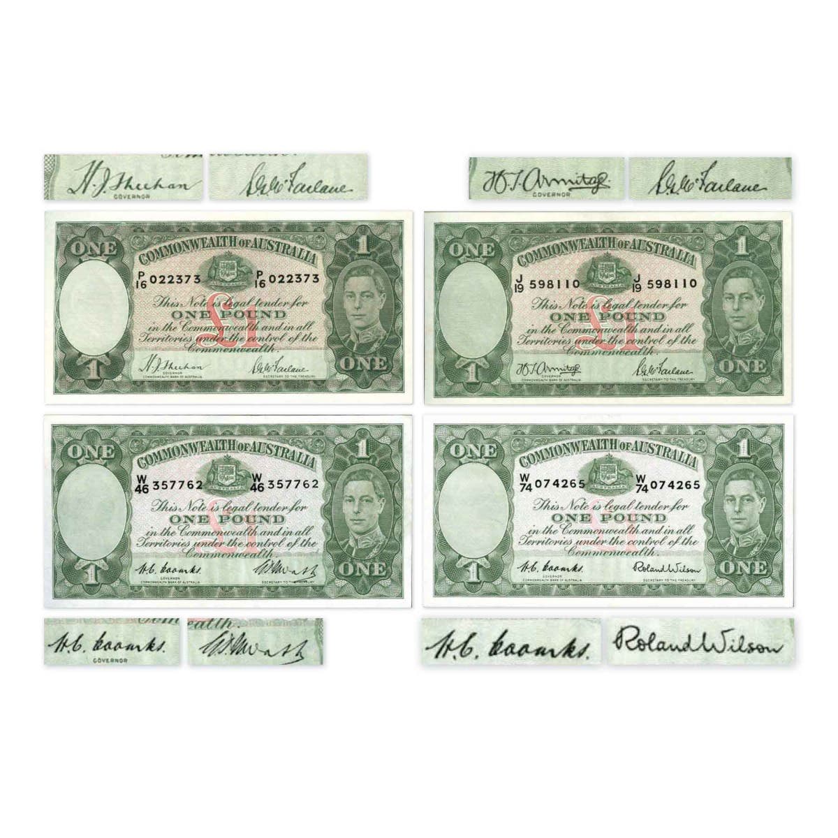 Australia George VI 1939-52 £1 Complete 4-Note Collection Uncirculated