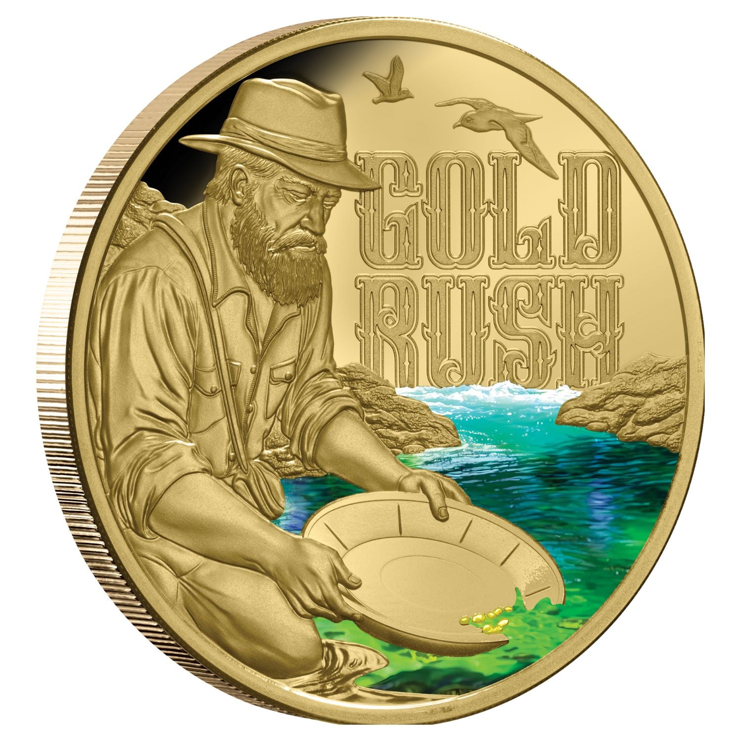 Struck to the peak of Proof quality from 1oz of pure, glittering 99.99% gold, this official full-colour legal tender coin is graced with arguably the most famous Gold Rush image. Depicting a miner panning for gold in a bid to strike it rich, the reverse instantly provokes thoughts of the Gold Rushes of the 19th century. More gold was produced during the 19th century than in the previous 5,000 years, in large part due to the Australian Gold Rush, which began exactly 175 years ago.