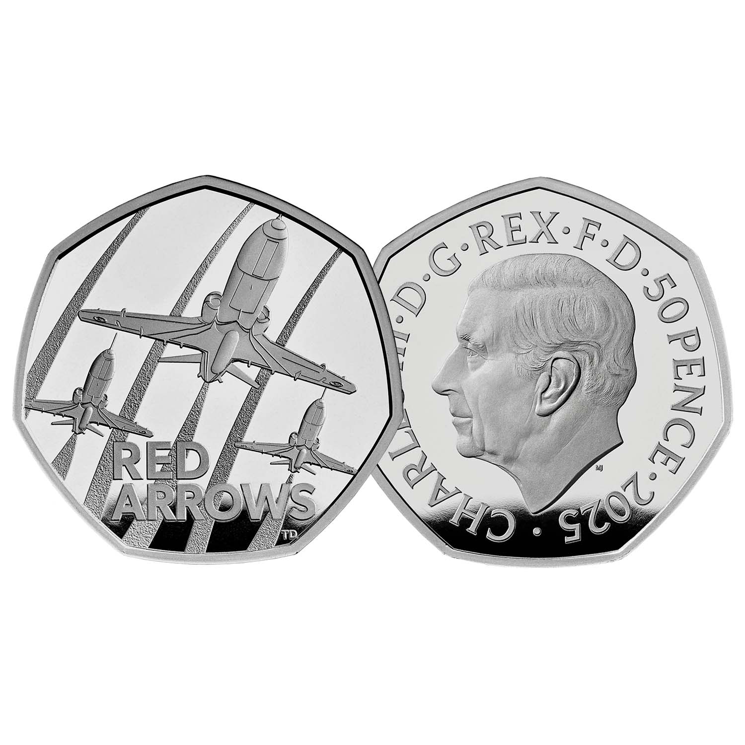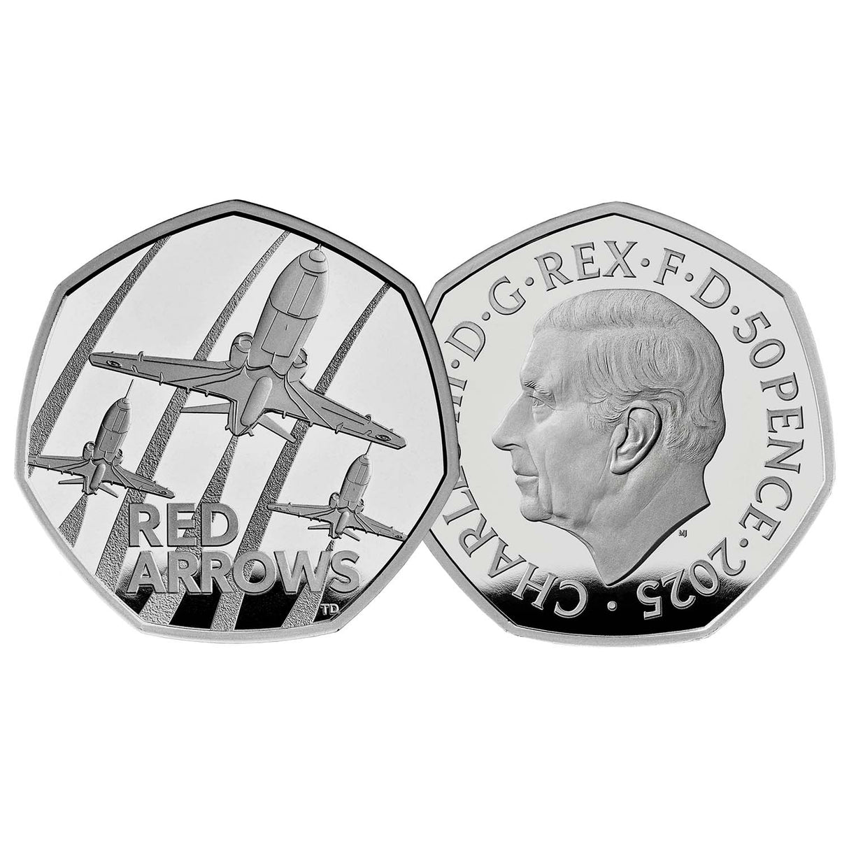 a 50p honouring the Red Arrows (the iconic RAF Aerobatic Team)