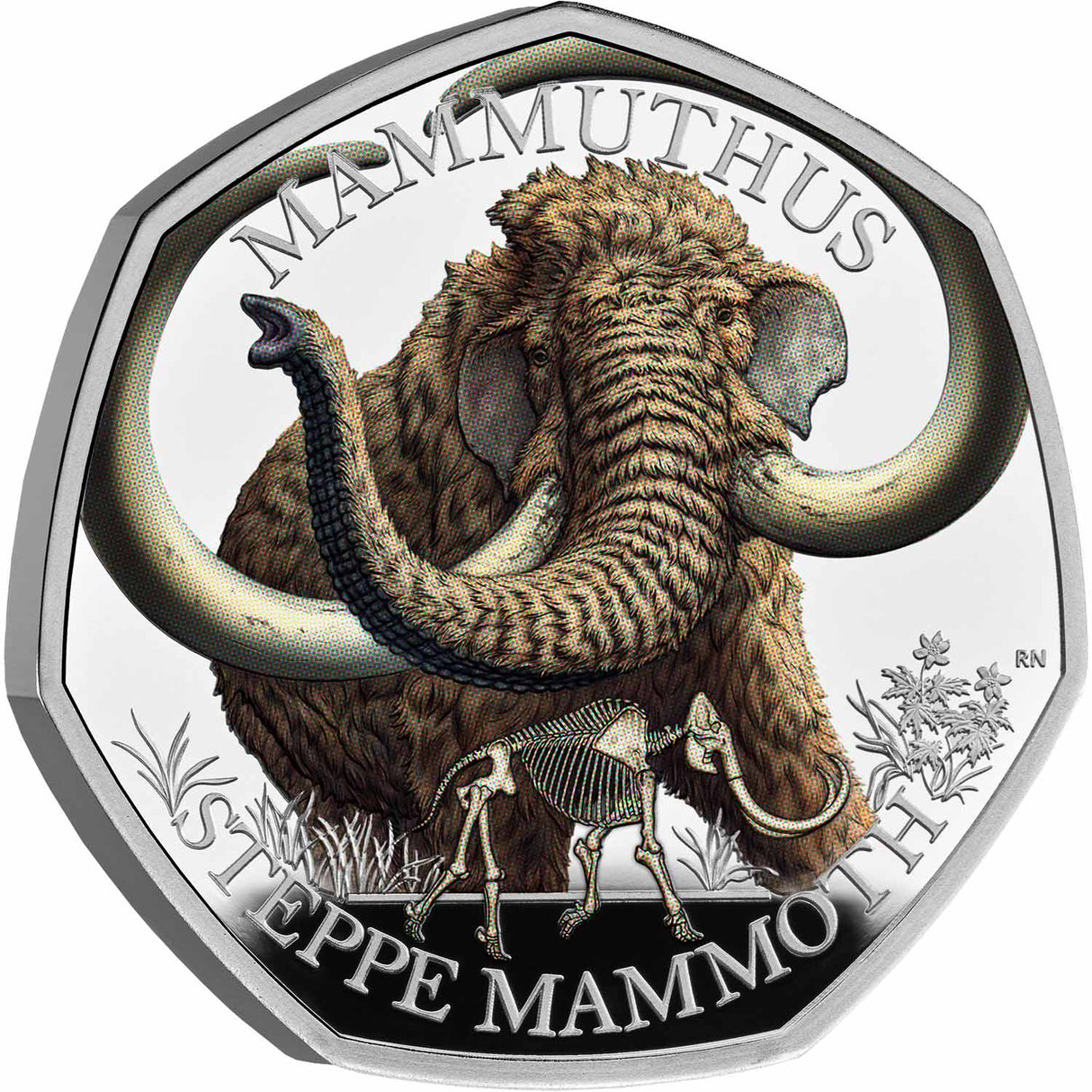 Created in collaboration with palaeobiologist Professor Adrian Lister of the Natural History Museum, with artwork by palaeo-artist Robert Nicholls, the coin honours the Mammuthus trogontherii. Known as the steppe mammoth, this enormous herbivore was one of the largest beasts to exist during the Pleistocene period, with an average shoulder height of 4 metres and an average weight of 10 tonnes!