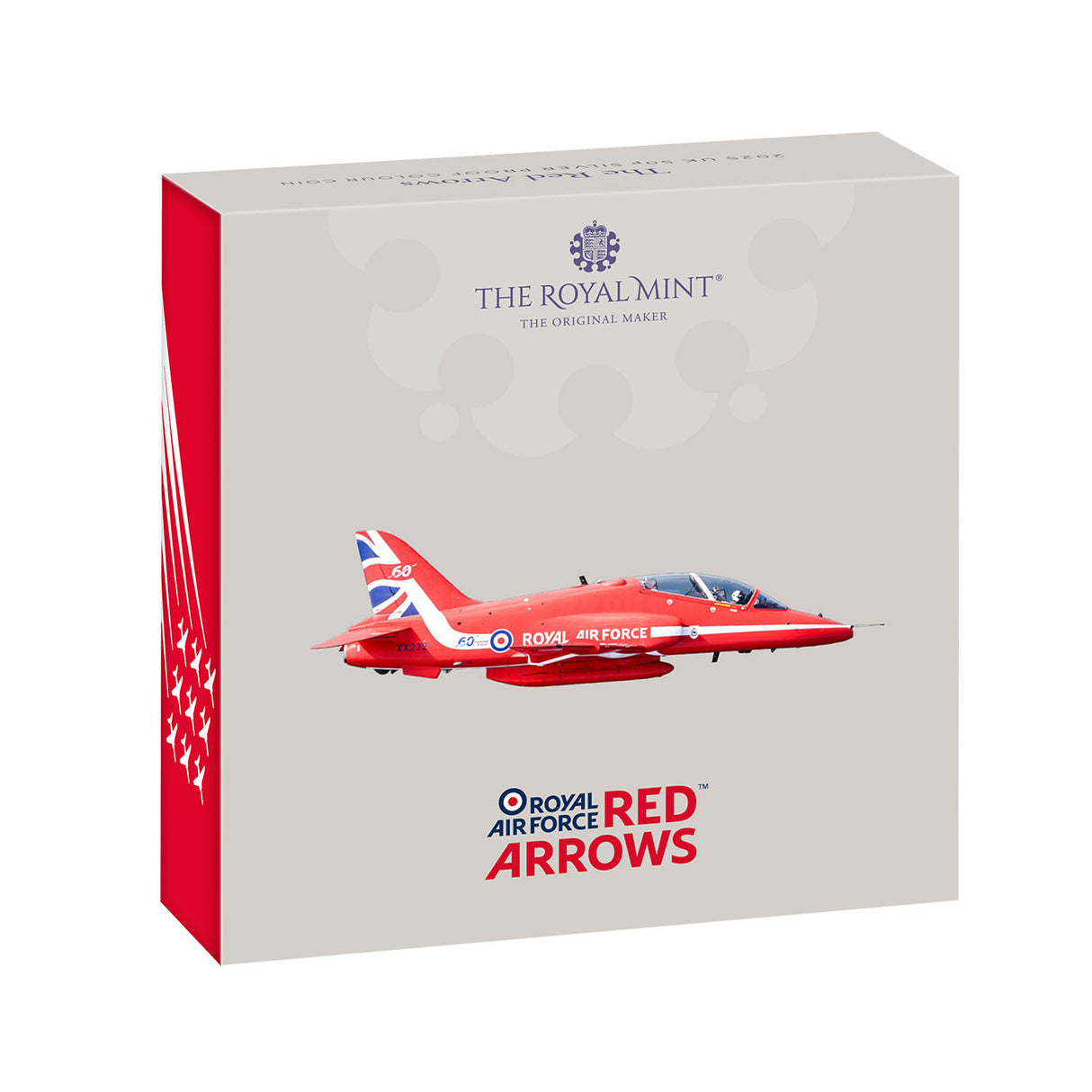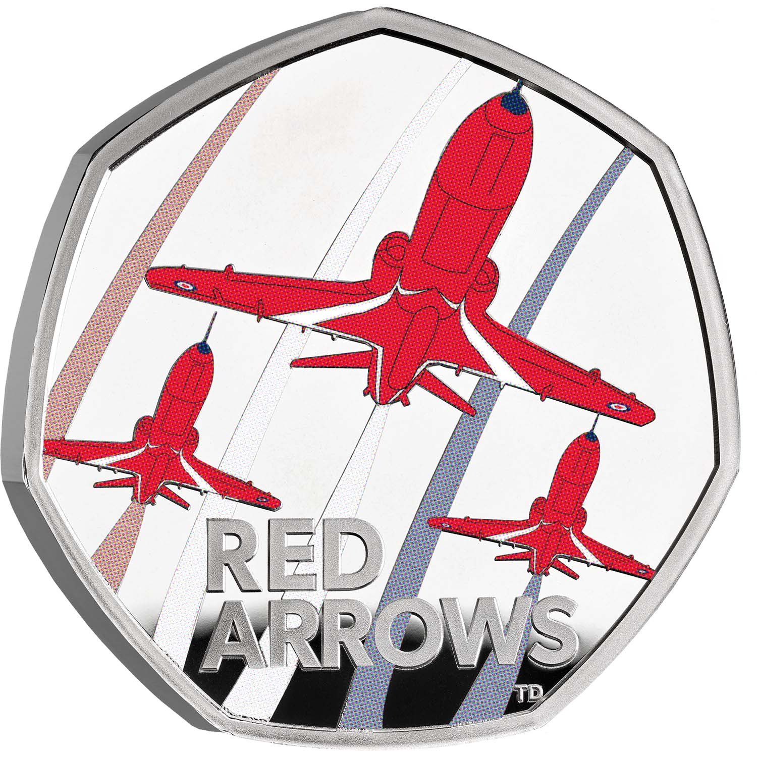 The reverse design features the classic Hawk T1 aircraft the Red Arrows have used since the 1980 display season.