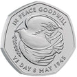 Features a remastered version of John Mills’ ‘dove of peace’ design that has been updated to include ‘IN PEACE GOODWILL’, as written by Winston Churchill.