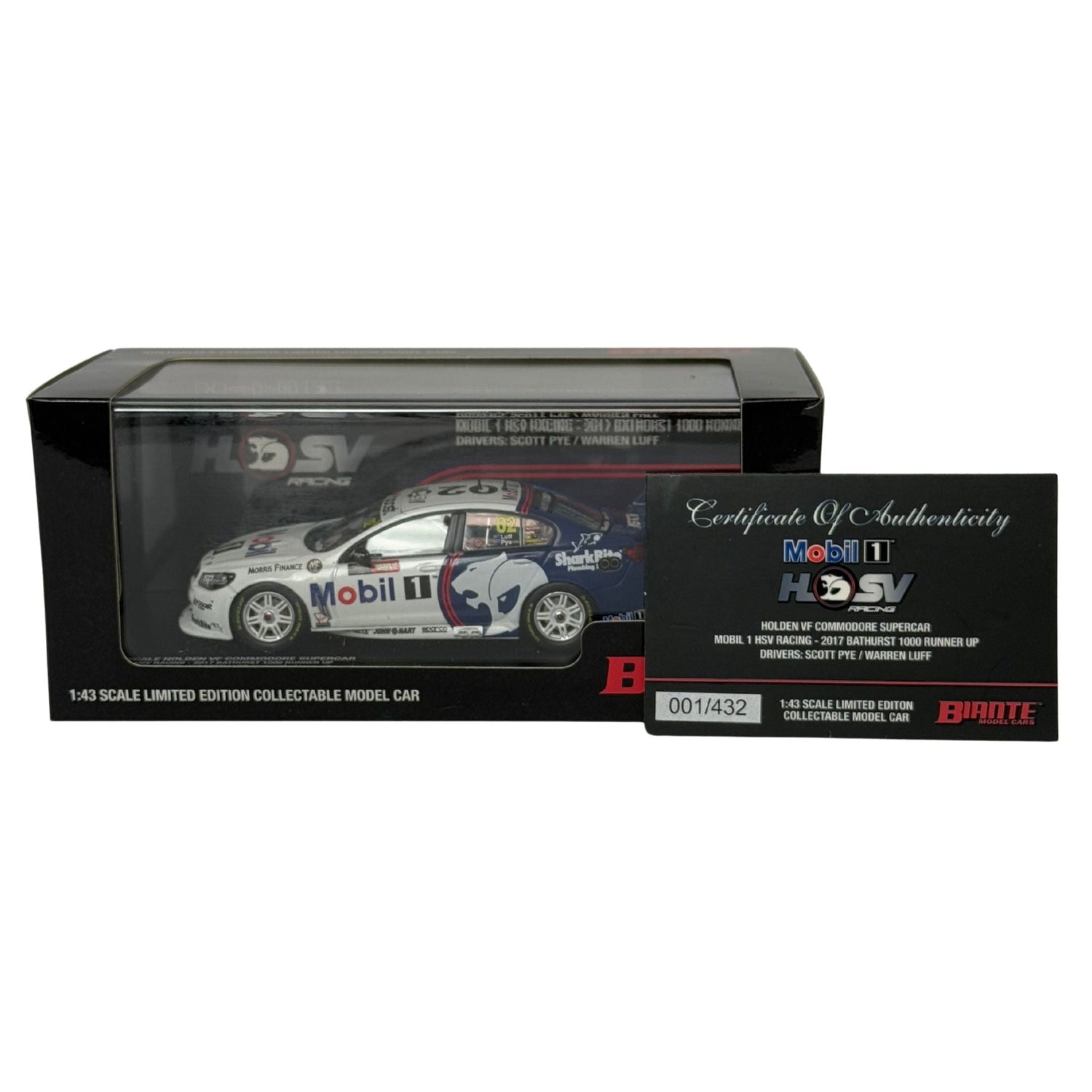 Certificate #1 - HOLDEN COMMODORE VF MOBIL 1 HSV RACING 2017 BATHURST 1000 #02 LUFF/PYE - 1:43 Scale Diecast Model Car