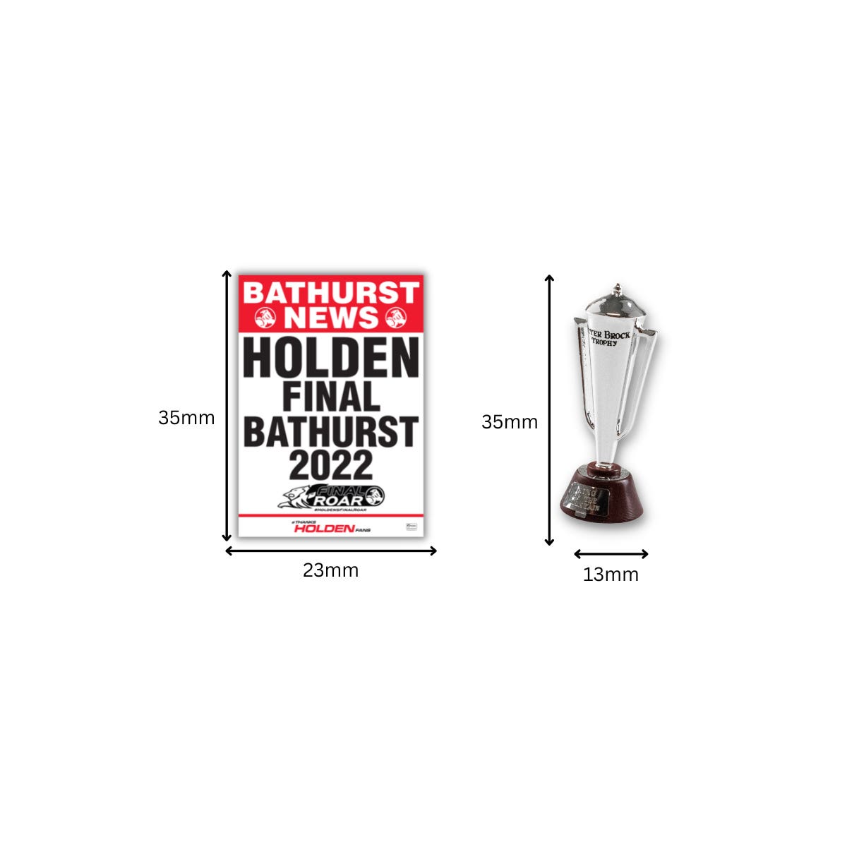 Includes miniature replicas of the Peter Brock Bathurst trophy and Bathurst News winner’s poster!