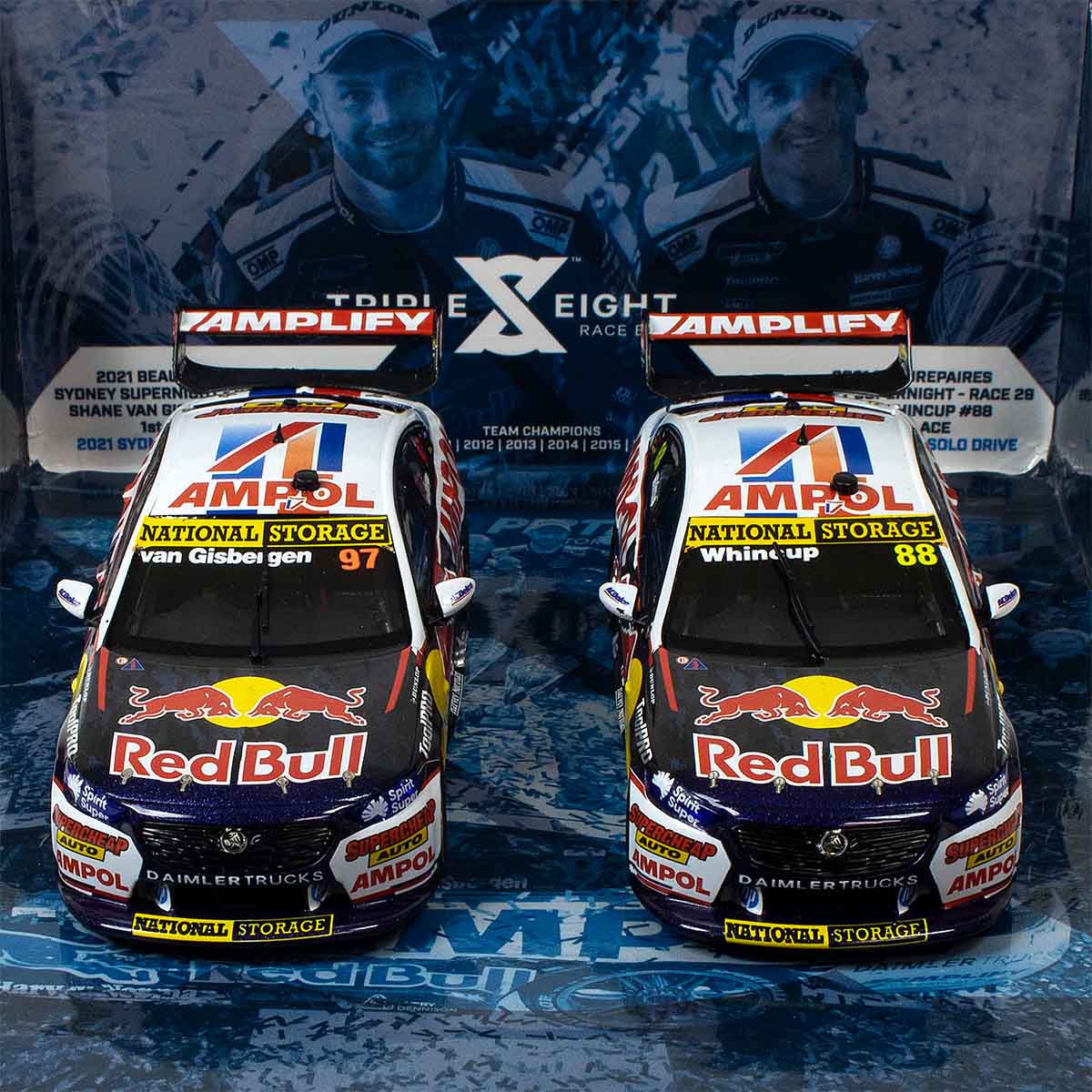 HOLDEN ZB COMMODORE - RED BULL AMPOL RACING - VAN GISBERGEN/WHINCUP - 2021 TEAMS CHAMPIONSHIP WINNER TWIN SET - 1:18 Scale Diecast Model Car
