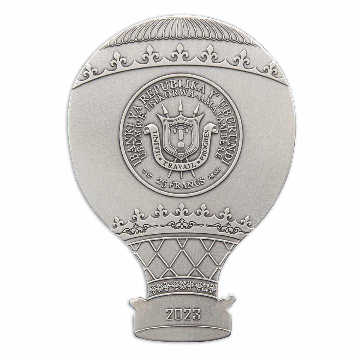 Hot Air Balloon 2023 25Fr 2oz Silver Antique Coin