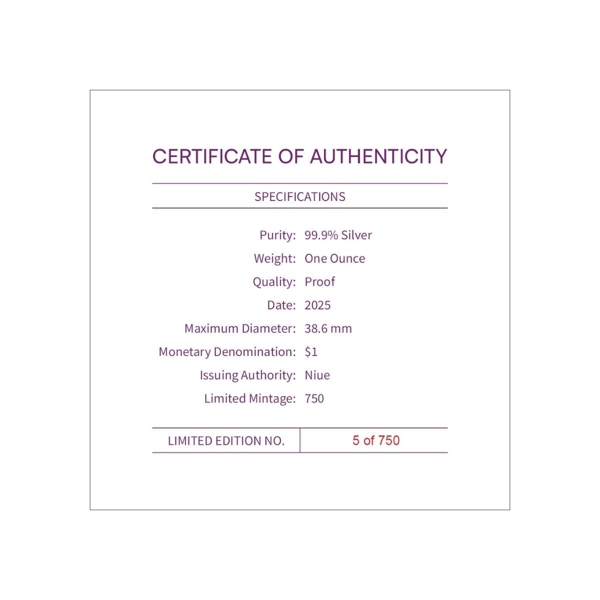 Sure to lift the spirits of any collector, and lift any collection to new heights, the Hummingbird 2025 $1 1oz Silver Proof is notable for the surprisingly small limited edition. A mere 750 coins will be issued worldwide! Click add to cart now!