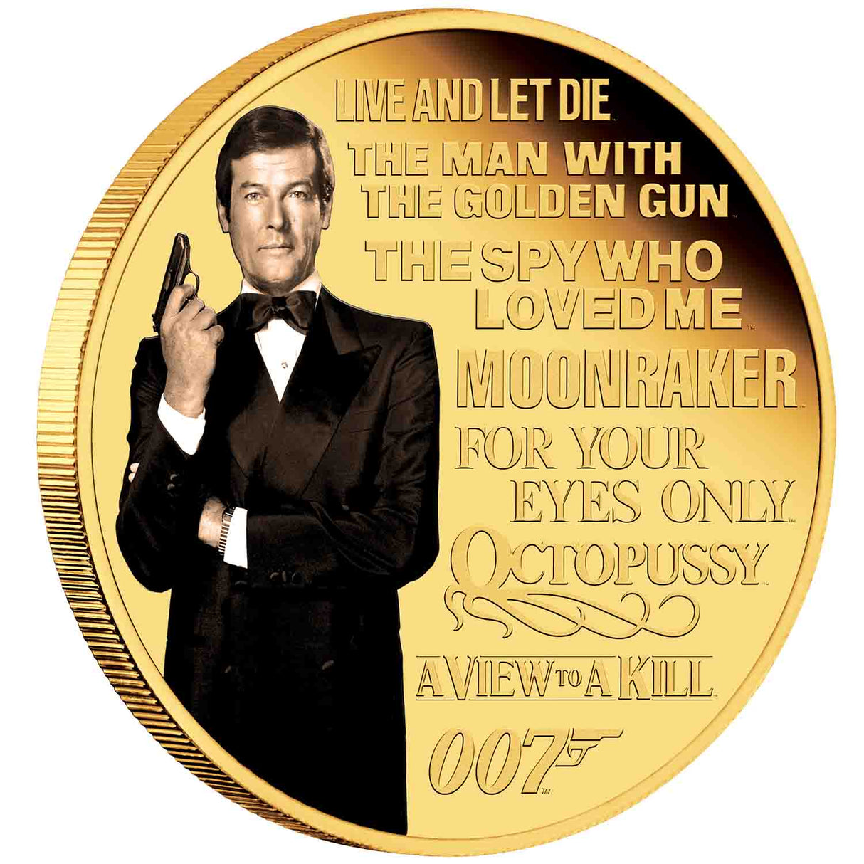 Inscribed with all seven Roger Moore Bond films, the gold-plated 1oz is EXCLUSIVE TO THIS SET!