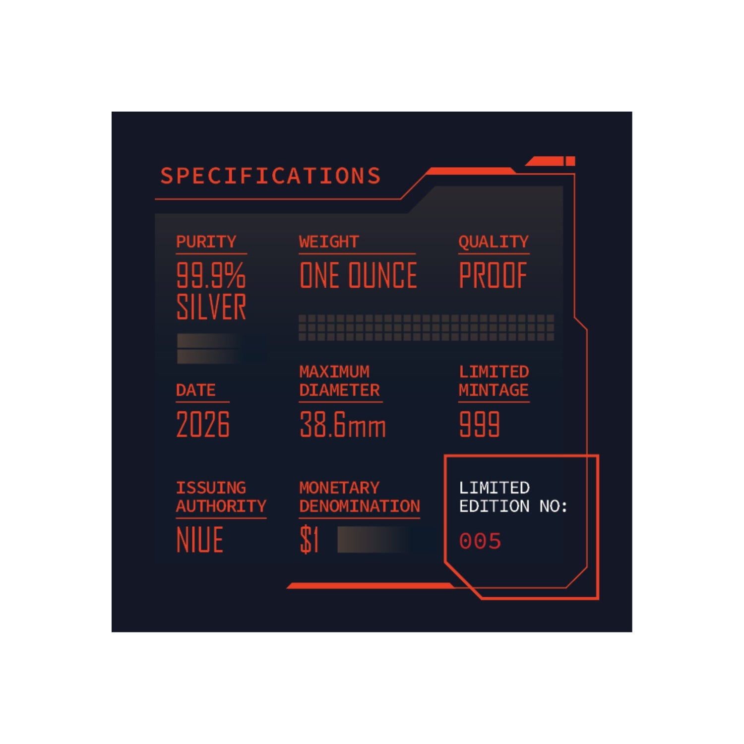Struck to the height of Proof quality from 1oz of 99.9% silver.