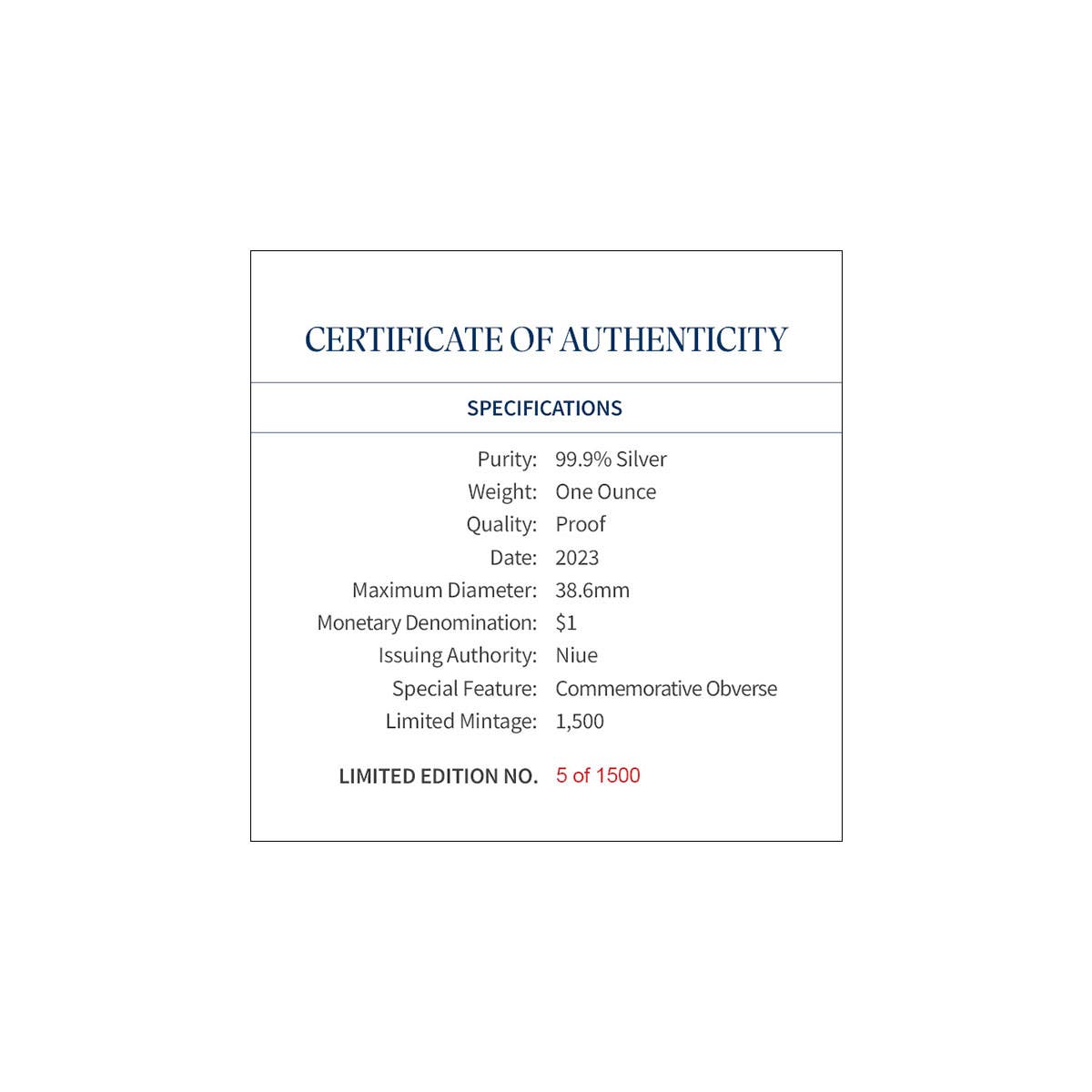 Beautifully presented within a plush timber case, complete with an individually numbered Certificate of Authenticity, this majestic legal tender silver Proof is strictly limited to a mere 1,500 coins worldwide. Highly collectible, a swift sell-out is all but certain. Immediate