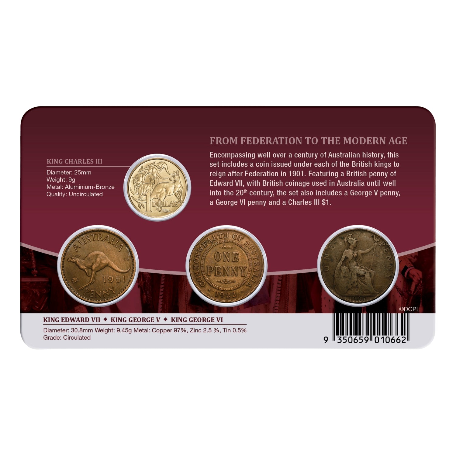 Encompassing well over a century of Australian history, we are delighted to present the Kings of Federation 4-Coin Set!