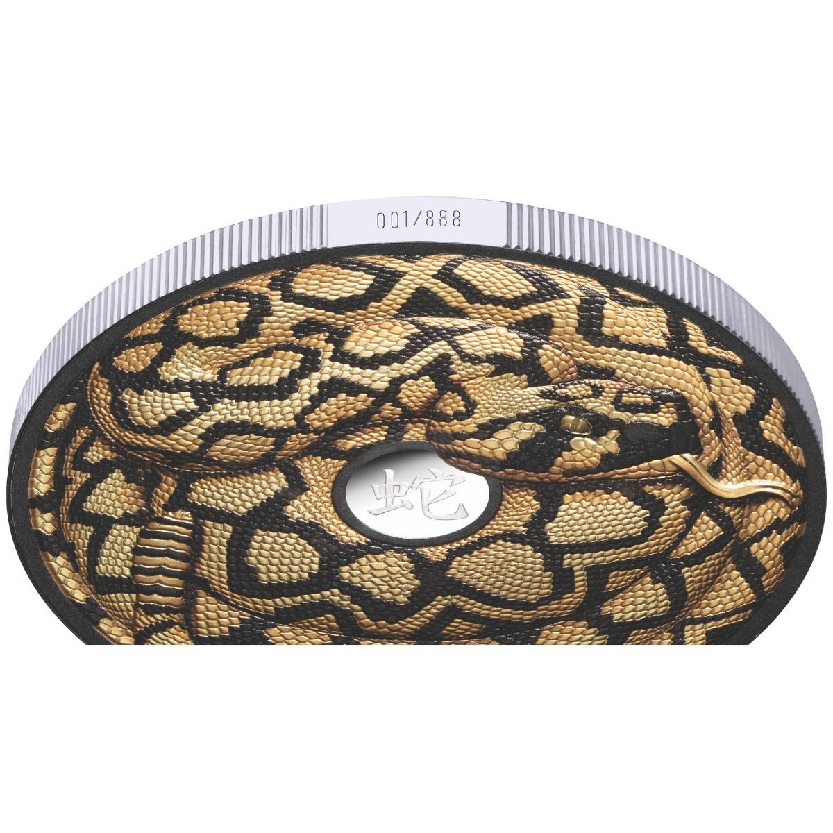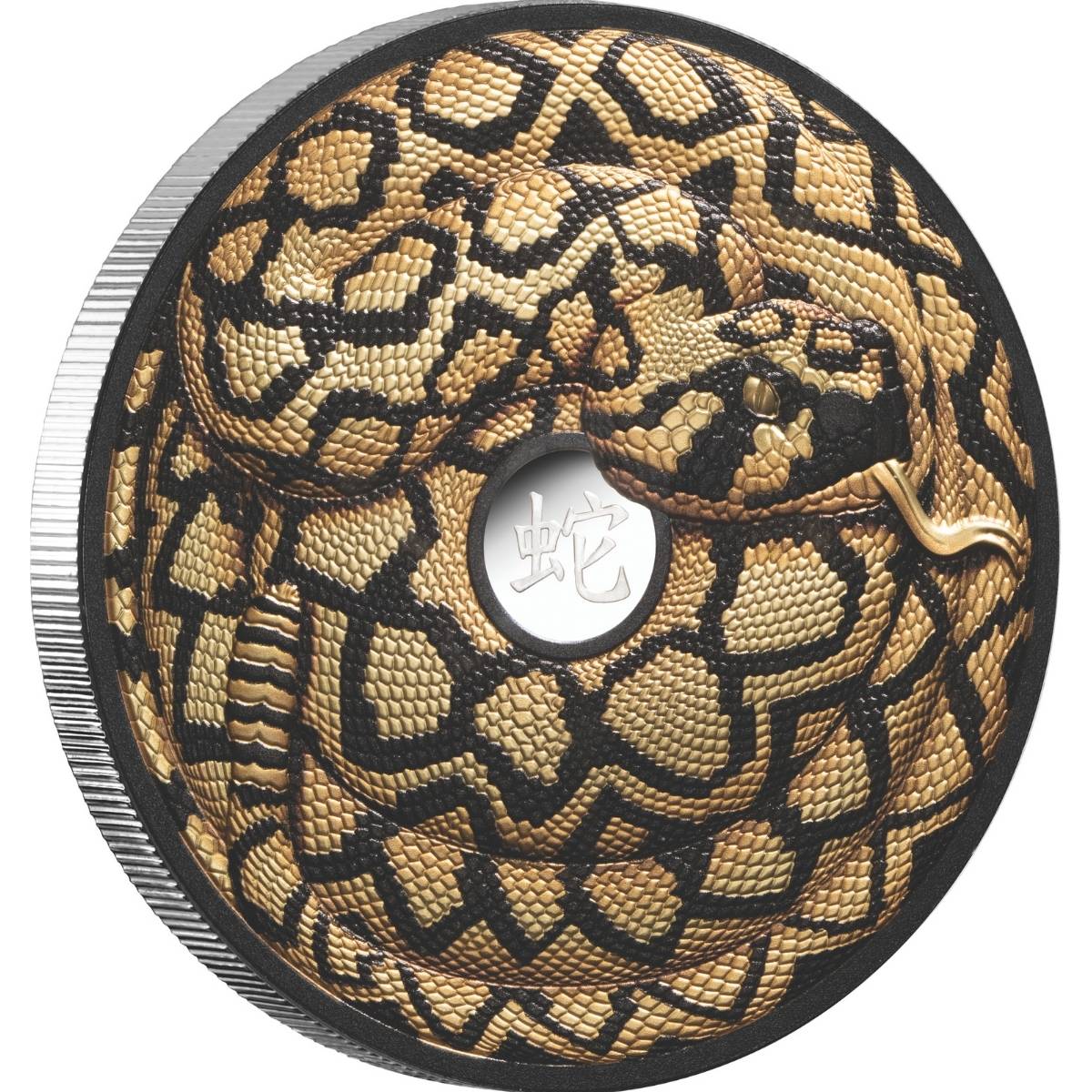 Rich and alluring, this unique Niue legal tender coin has been struck from 5oz of 99.9% PURE SILVER. Covering a colossal 65mm reverse, a gold and black serpent has been rendered in intricate detail, coiled around the Chinese character for ‘snake’ and boasts individual edgenumbering that matches a Certificate of Authenticity! Each scale has been luxuriously finished in 24-CARAT GOLD, lending this legendary sign the gravitas it deserves!