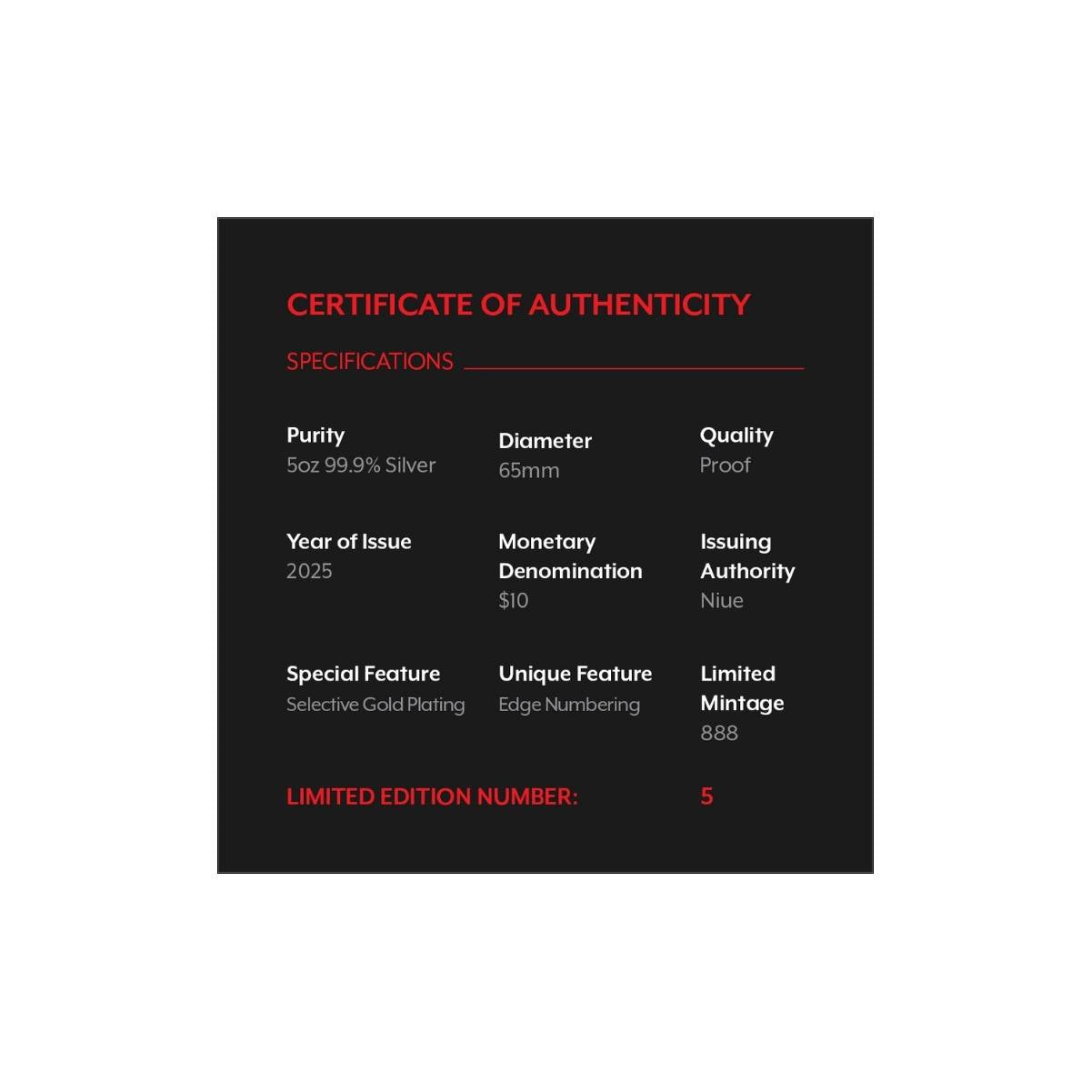 Worldwide mintage limited to a lucky 888 coins!