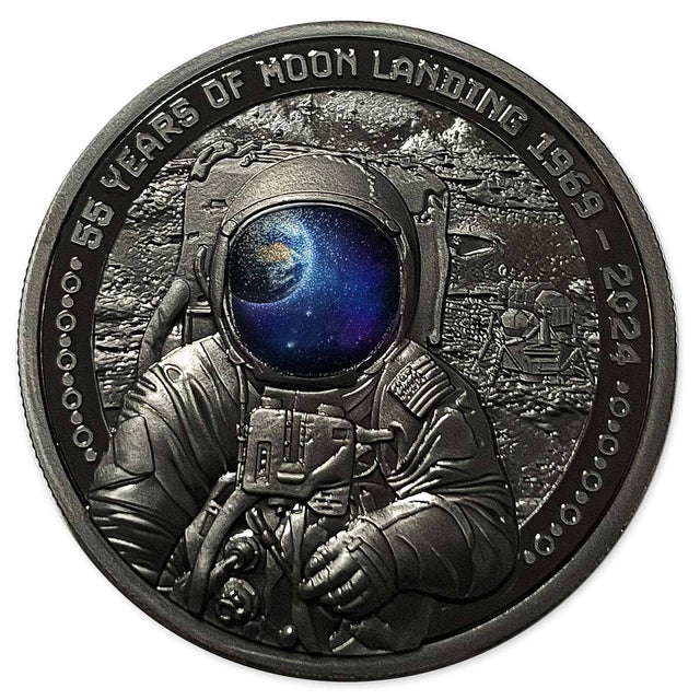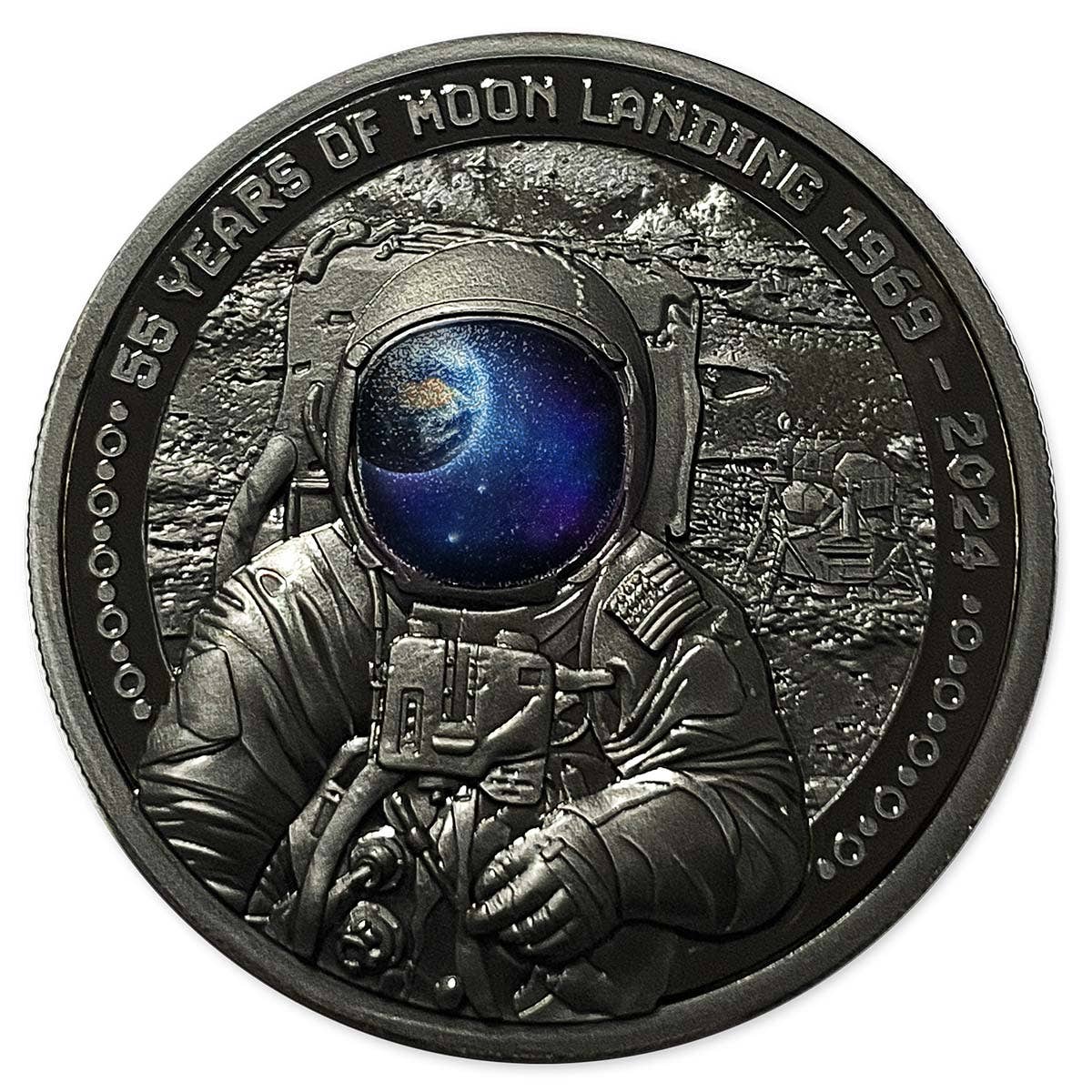 This beautiful coin is dedicated to the 55th Anniversary of one of the most important human event – the Moon Landing.
