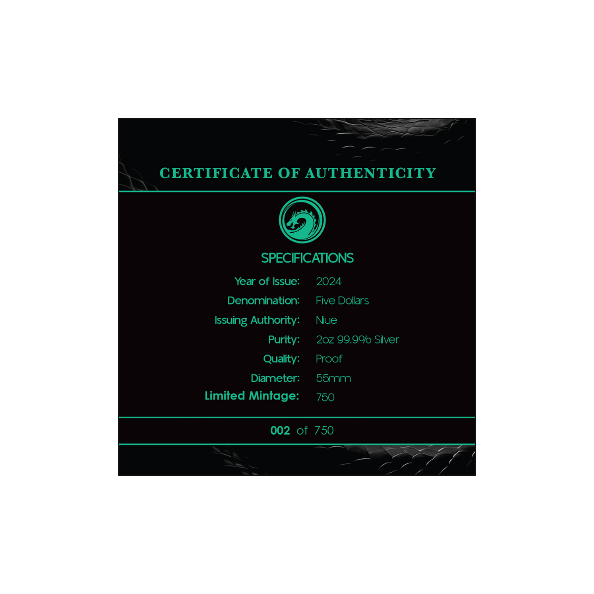 Vicious, majestic and utterly unmissable, the Sea Serpent 2024 $5 2oz Silver Proof Coin is the most impressive coin to date in the Mythical Creatures coin series. With a striking full-colour design, premium silver composition, and remarkable rarity, this Niue legal tender will make waves!