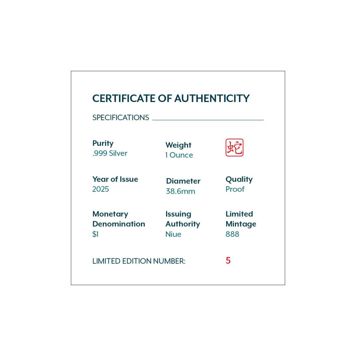 Lunar Year of the Snake 2025 $1 1oz Silver Proof Coin