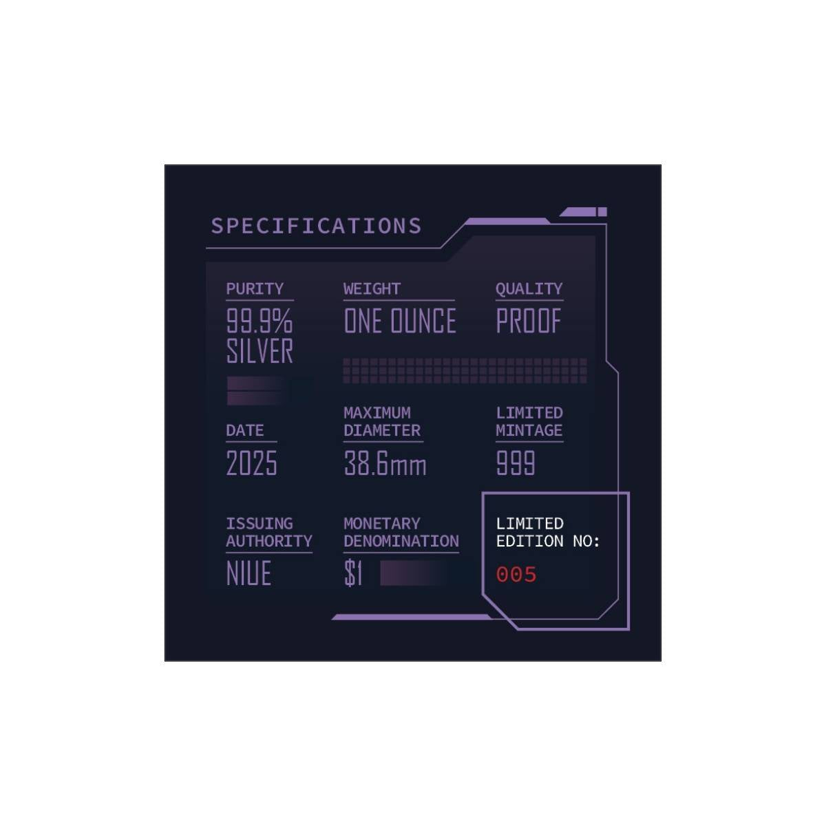 Crafted from 1oz of 99.9% pure, sparkling silver.
