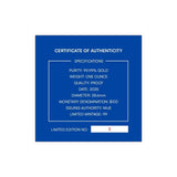 Struck to pristine Proof quality from 1oz of 99.99% PURE GOLD!