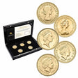 Each of those sets comprises five genuine British Gold Sovereigns – each struck at the Royal Mint. Following her journey from youthful monarch to 'Matriarch of Great Britain', each sovereign bears one of the five main obverse portraits of Elizabeth II used on British coinage from the 1950s to the current day.