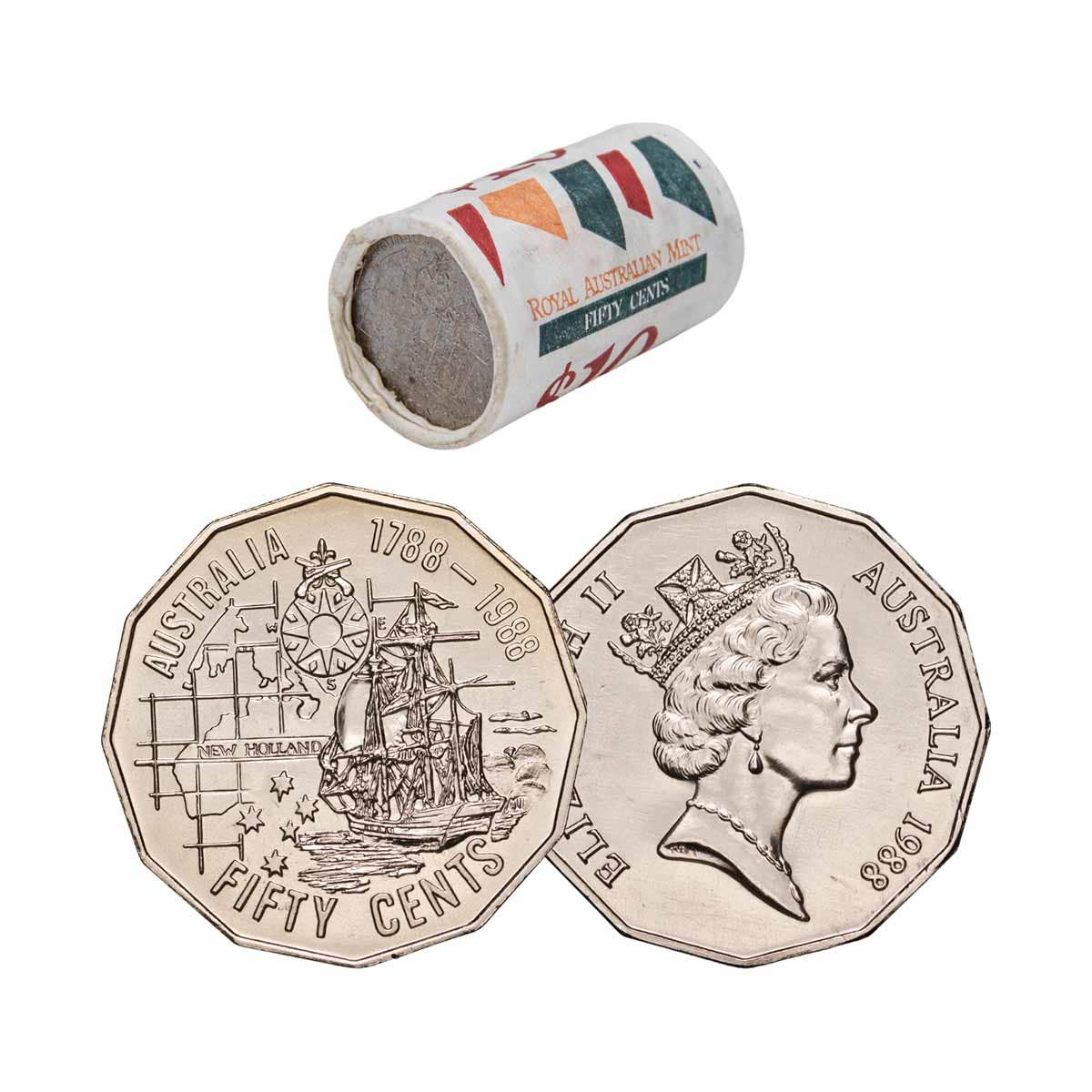 Australia Bicentennial 1988 50c Cupro-Nickel Uncirculated 20-Coin RAM Mint Roll