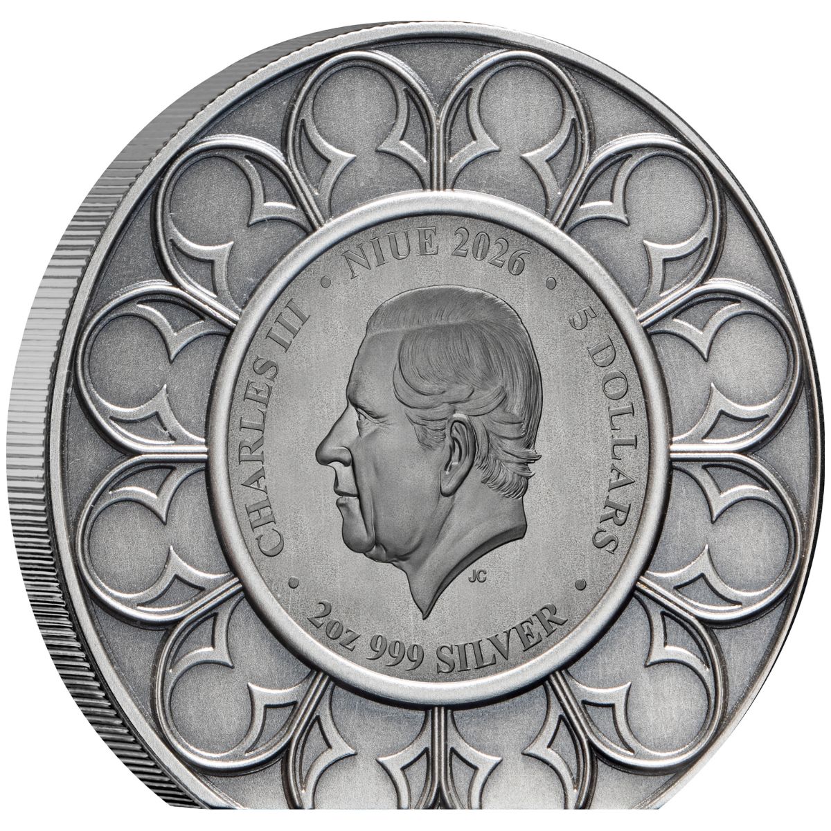 Official Niue legal tender – spans 45mm x 40mm.
