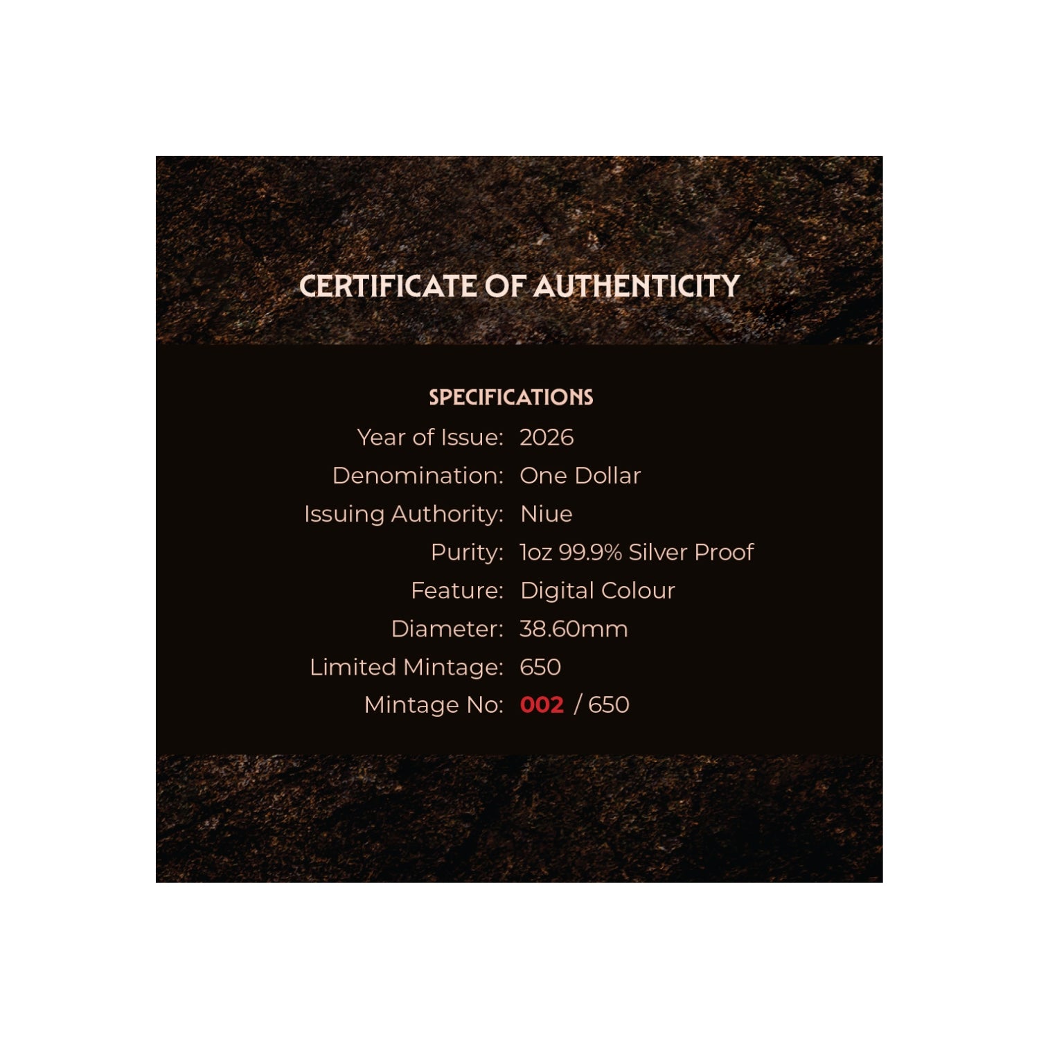 A dynamic, terrifying tribute, this official legal tender issue is an exclusive limited edition. With just 650 coins available, immediate action is essential.