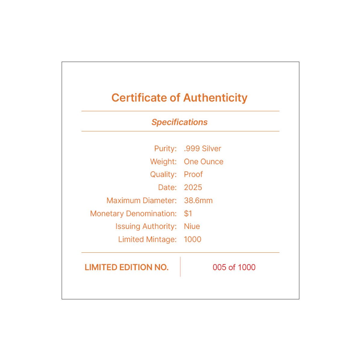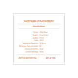 Struck to impeccable Proof quality from 1oz 99.9% pure silver.